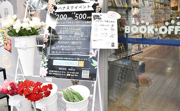 株式会社Hanavieが提供している規格外のお花「プラスフラワー」を販売しています。花市場の基準から外れ、通常の流通に乗らず日の目を見ないものが多いですが、茎の太さや長さ、花の輪の大きさなどがまばらなだけで綺麗なものばかりです。「プラスフラワー」は、花の廃棄ロスの削減、さらに生産農家を支援することにも繋がり、生産する人も買う人も豊かになるという笑顔の循環が生まれます。取り扱い店舗は、都内店舗を中心に随時拡大しています。