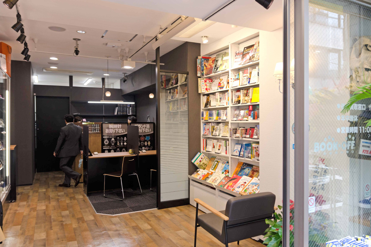 総合買取窓口店は、地域の皆様一人一人とより密接な繋がりを持つことを念頭に、都心部駅近くでブックオフが今まで出店できなかったエリアでの出店をより加速するため、定番の本、ゲーム等に加え、洋服・ブランド品、ジュエリー、金・プラチナ、家電、楽器など皆様の生活にかかわる様々なものを「お売りいただく」ことに特化した店舗です。