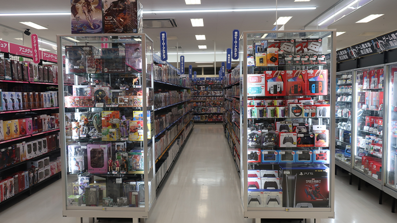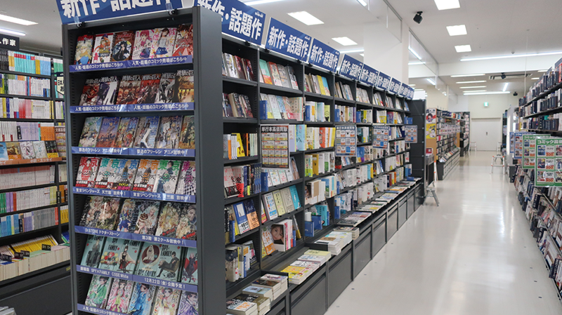 売場面積248坪の店内には定番の本・CD・GAMEに加えトレカ・ホビー・アニメグッズ商品のラインナップを強化。