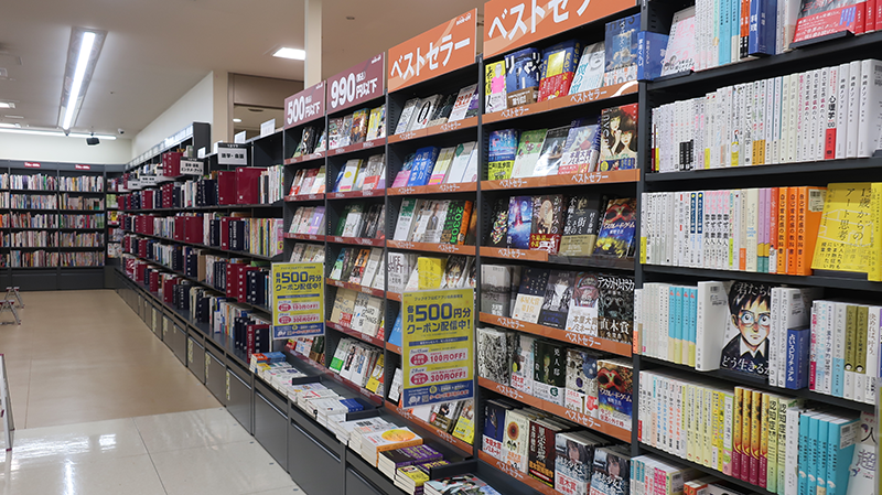 約 300 坪の店内におなじみの本、CD、DVD、ゲームソフト、トレカに加えプラレール、トミカ、鉄道模型、ミニカー、プラモデルなどのホビー商材アニメ系グッズのほか、デジタル・生活家電、楽器などを豊富に取り揃えております。