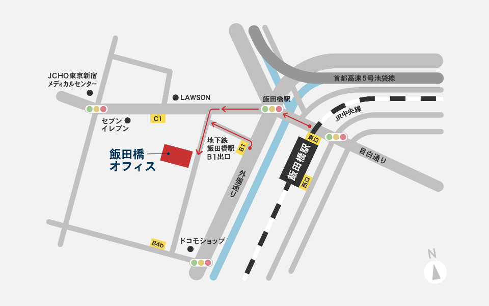 東京メトロ有楽町線・東西線・南北線・都営地下鉄大江戸線『飯田橋駅』下車。B1出口からすぐ。
