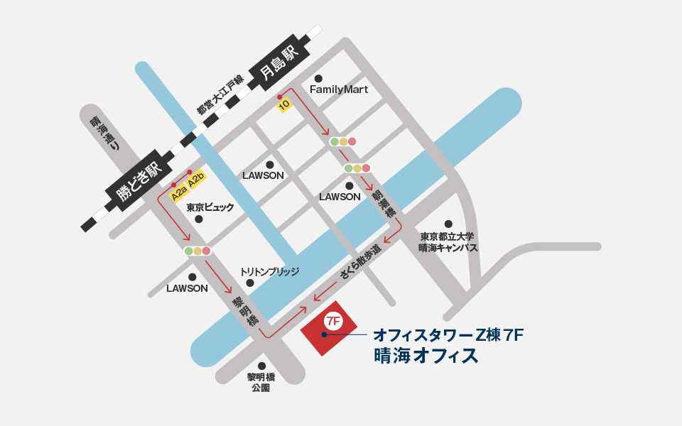 都営地下鉄大江戸線「勝どき」駅下車 A2a・b出口(月島駅側)より徒歩4分
