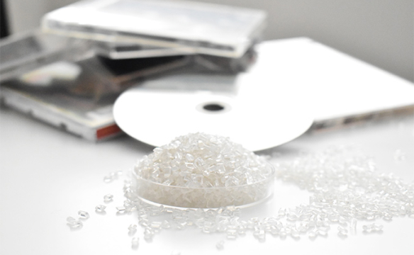 CD・DVDは、「ポリスチレン」「ポリプロピレン」「ポリカーボネート」の3種類のプラスチック製の部材の組み合わせにより構成されております。これらを素材別に分別し、破砕し、リペレットした4品目の再生プラスチック資材を、当社オリジナルの商品「CDプラ」として販売しています。
